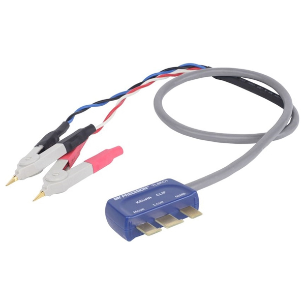 Cable De Prueba Kelvin BK Precision TL8KC1, es un cable para medir capacitores, inductores y resistencias con plomo. La longitud del cable es de aproximadamente 16 pulgadas (40,64 cm). Cuando se usa con el BK880, BK879B y BK878B, el cable protegido reduce el efecto de las impedancias del cable y la resistencia de contacto, minimizando así los errores de medición y mejorando la precisión, especialmente en el rango de impedancia más bajo.