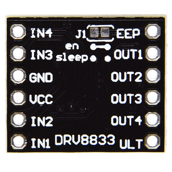 Controlador de motor Dc 2 CH de 1.5A DRV8833 puede controlar hasta dos motores de corriente continua o un motor paso a paso. Los motores se pueden controlar de manera independiente por medio de señales PWM controlando el sentido de giro, el punto muerto o paradas con una frecuencia de hasta 100 KHz. Para cargas superiores de 0.6A debe usarse un disipador térmico. La corriente de salida de un solo puente H es 1.5A, que puede manejar 2 motores de desaceleración de Dc.