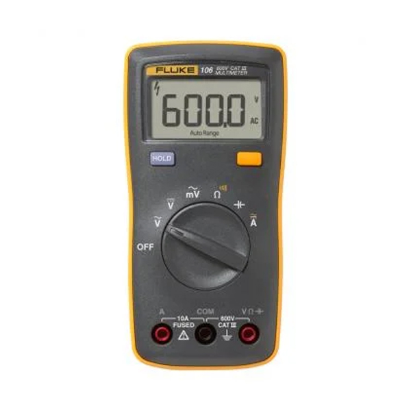 Multímetro Digital Fluke F106, es un multímetro digital de bolsillo que pone las medidas en la palma de su mano, medidas de Voltaje hasta 600V en AC/DC, corriente hasta 10A en AC/DC, resistencia hasta 40Mohm, Capacitancia hasta 1000 uF, medición de diodos, continuidad y milivoltios en AC. Incluye: Equipo, puntas TL75, Baterías AAA (2) y Manual de Uso. Garantía: Un (1) año por defecto de fabricación.