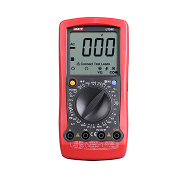Multímetro Digital Uni-Trend UT58C posee operaciones estables, protección de sobre carga en todos los rangos y una estructura única. El multímetro digital UT58C posee rango manual seguro y confiable que es fácil de operar. Su gran pantalla LCD de 60 mm x 54 mm muestra cómodamente los resultados de las mediciones. Esta serie de multímetro digital satisface una variedad de aplicaciones en los campos eléctrico y electrónico.