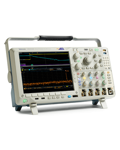 La serie MDO4000C de osciloscopios de dominio mixto tiene características de 6 instrumentos como un osciloscopio, un analizador de espectro, generador de función arbitraria, un analizador lógico, un analizador de protocolo, un voltímetro digital y un contador de frecuencia.