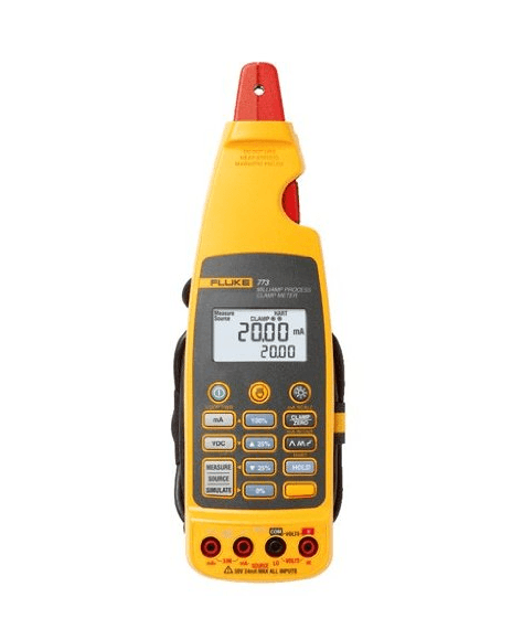 La pinza amperimétrica Fluke 773 de procesos para medición de miliamperios, permite medir y generar corriente en mA sin interrumpir el circuito eléctrico y también puede simular corriente en mA y medir y generar fuente de voltaje DC.
