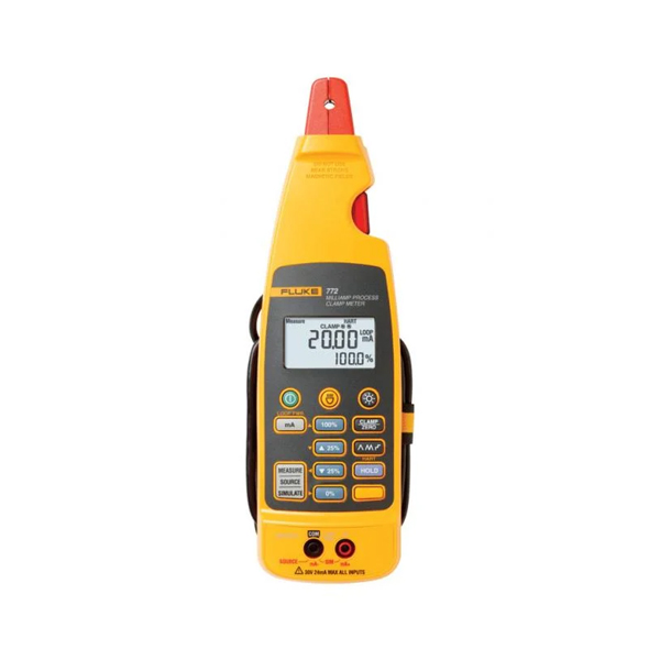 Pinza De Proceso F772 para medición de miliamperios, permite medir y generar corriente en mA sin interrumpir el circuito eléctrico, además puede simular corriente en mA.