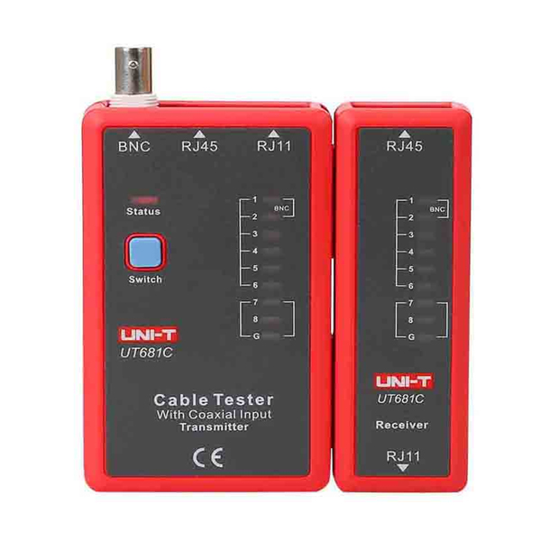 Probador De Red Uni-Trend UT681C, automáticamente detecta buenas conexiones, cable abierto, cables cruzados y en cortocircuito. Los probadores de cables portátiles de la serie UT681 se pueden usar para verificar rápidamente si los cables Ethernet / teléfono / BNC son conductores, están en cortocircuito, están cruzados o en circuito abierto. Son herramientas ideales para que los técnicos instalen, mantengan e inspeccionen el circuito del sistema actual de la semana.