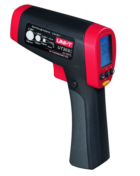 El termómetro infrarrojo sin contacto UT303C puede determinar la temperatura de la superficie midiendo la energía infrarroja irradiada por la superficie del objetivo. Posee bajo consumo.