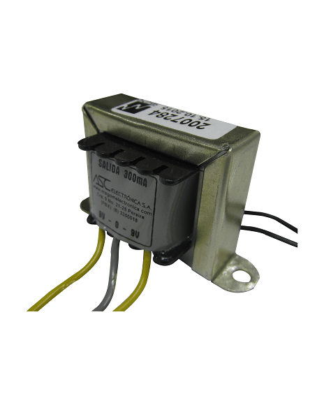 Voltaje de salida en el secundario 9V/0/9V AC, con cable amarillo, gris y amarillo respectivamente