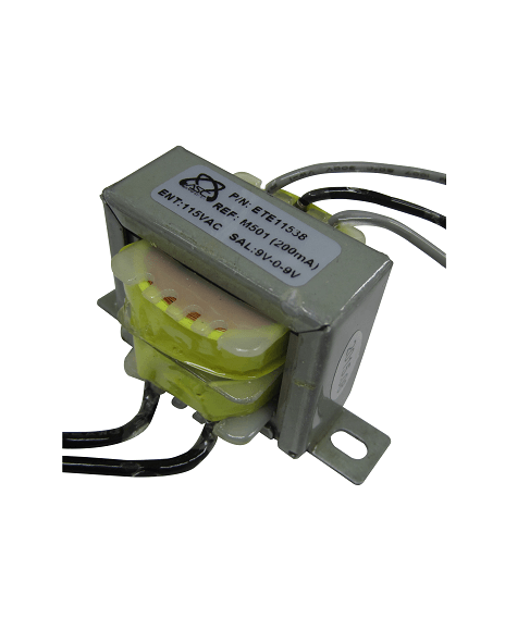Voltaje de salida en el secundario 9V/0/9V AC, con cable gris, negro y gris respectivamente