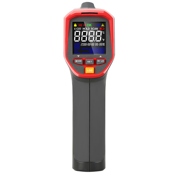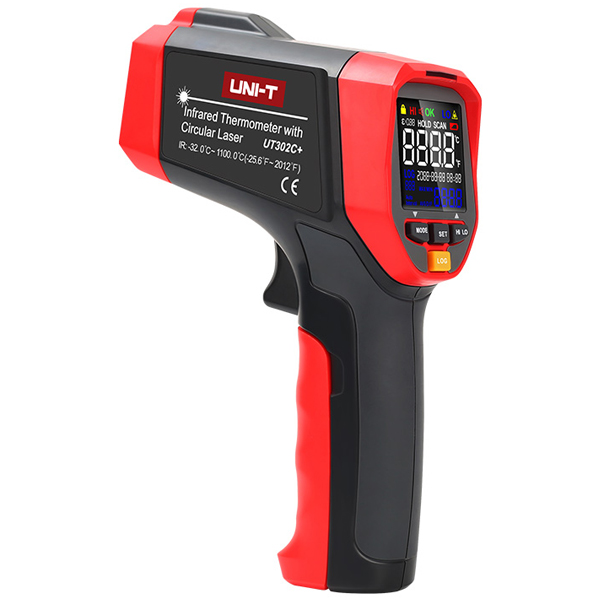 UT302C+ Termómetro Infrarrojo -32~1100 Grados Centígrados Uni-Trend, equipo diseñado para medir sin contacto temperaturas de superficies de diferentes objetos en el rango de -32 ℃ ~ 1100 ℃. El termómetro infrarrojo puede determinar de forma rápida y precisa la temperatura de la superficie midiendo la energía infrarroja irradiada desde la superficie objetivo. Es adecuado para la medición de la temperatura de la superficie sin contacto. El UT302C+ tiene láser de anillo, un método de visualización patentado único que cubre toda el área medida, el usuario sabrá exactamente dónde se está realizando la medición. Ideal para probar mecanismos de arranque, relés, fusibles, poleas, ruedas en funcionamiento, entre otros.
