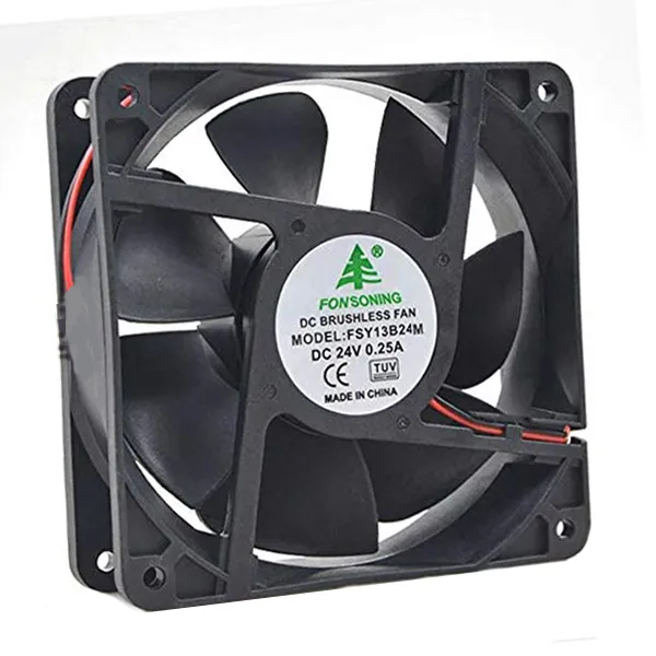VF424-1 Ventilador axial 24Vdc 0.25A 120X120X13 Fonsoning, es un ventilador sin escobillas (brushless) lo que significa que reduce el desgaste y prolonga la vida útil del ventilador, conexión axial con cable polarizado sin conector